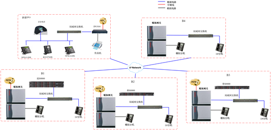 BOE原始為一整套S8800系統(tǒng),初始為1000門用戶,后擴容300門用戶,現(xiàn)共有1300門用戶,新建一套IPO系統(tǒng),采用全SIP終端模式,其中S8800系統(tǒng)需要與IPO組網(wǎng)。